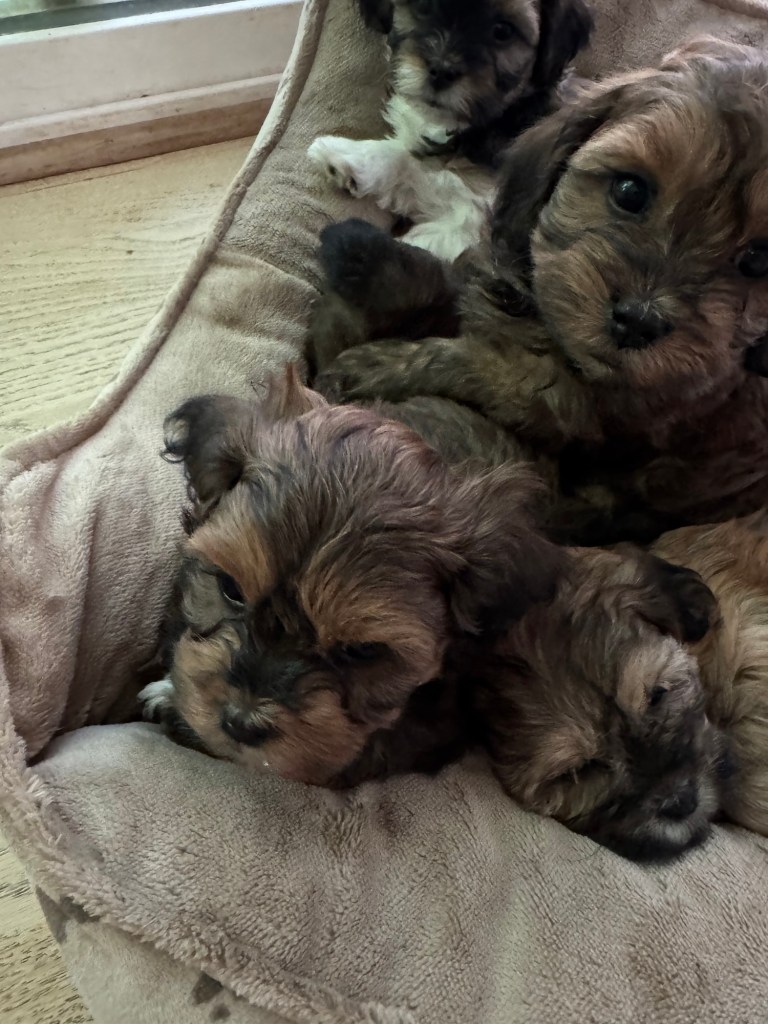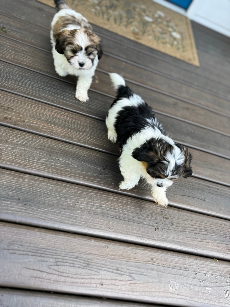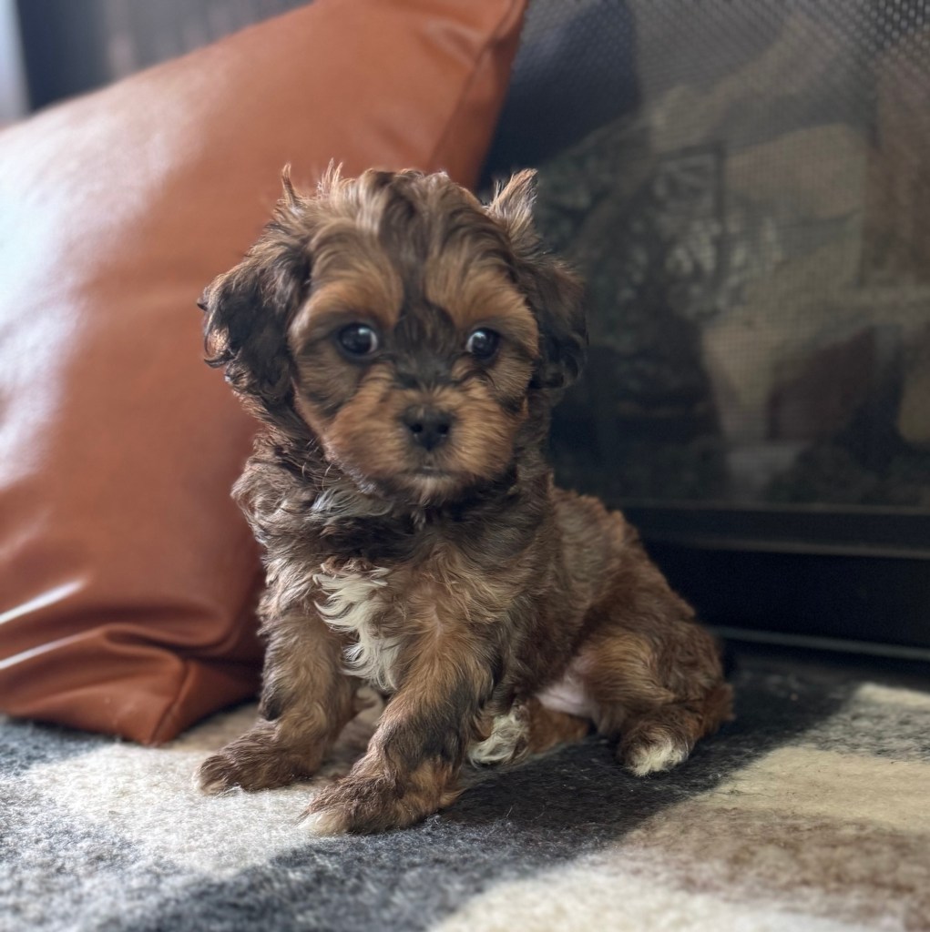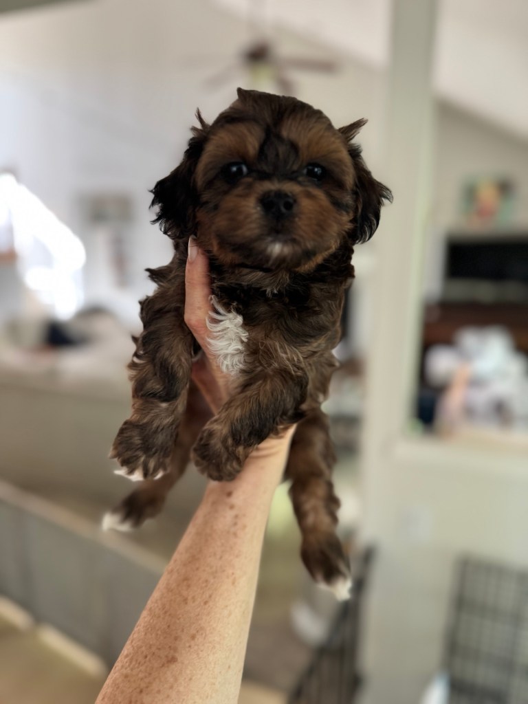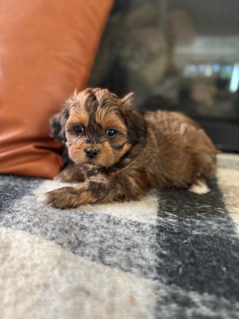 We started breeding purebred AKC Shih Tzus and transitioned to the designer breeds at the recommendation of our vet. We mix two or more already healthy breeds and as a result, these designer dogs have less skin allergies than purebreds and overa better health. We consider our pups to be the best of both worlds. They become amazing companions and members of your family. Our puppies will typically weigh in the 10 – 15 pound range as adults. As they get older their hair gets longer and “fluffier.” Check out photos of previous dogs of ours on the “photos” page as well as the photos below.
